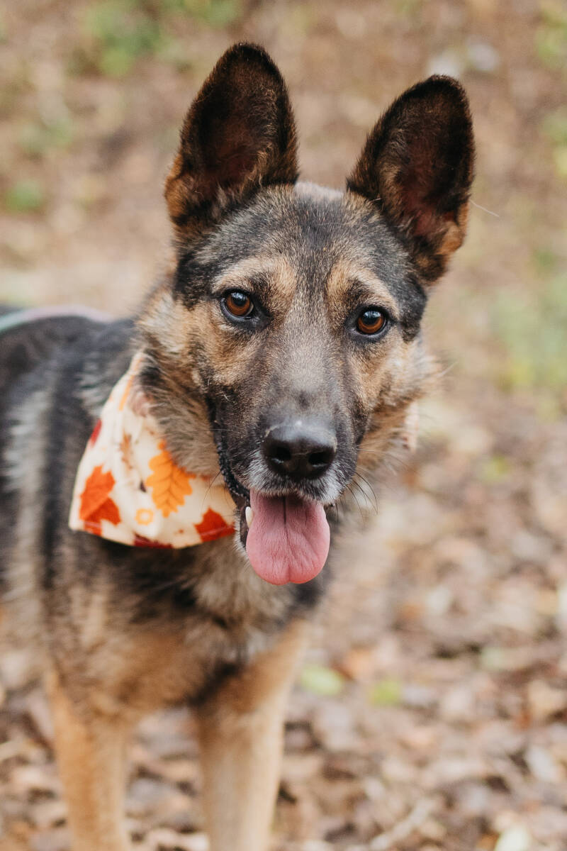Ihre Geschichte: Sie wurde mit ihrer Mutter und ihren Geschwistern auf einem Feld in der Nähe einer stark befahrenden Straße gefunden und kam zu uns.