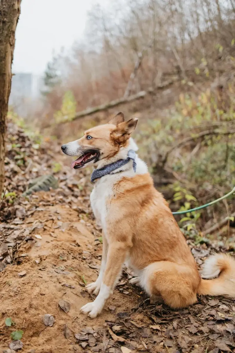 Mukha ist eine sanfte und sensible Hündin. Sie sieht aus als wenn sie lächelt und ist sonst aufgeschlossen. Am Anfang wird sie aber zurückhaltend und schüchtern sein gegenüber Fremden, taut aber auch schnell auf , besonders mit Leckerlis. Baden, Pfoten abwischen und Bürsten lässt sie gut mit sich machen. An der leine läuft sie gut , braucht am Anfang aber zeit um sich an alles neuen zu gewöhnen. Deswegen ist es auch besser am Anfang sie doppelt zu sicher (Halsband und Geschirr) oder mit einem Sicherheitsgeschirr. Man sollte sie schrittweise an die komplett neue Umgebung Gewöhnen. Sie wird sich aber trotzdem schnell an alles gewöhnen und erkundet sehr gerne ihr neue Umgebung dann. Auch an die Stadt haben wir sie schon gut gewöhnt und mit Leckerlis ist sie gut durch zu führen, Laute Geräusche und unerwartete Bewegungen können sie aber erschrecken. Das Kommando sitz kann sie sehr gut und ist dafür bereit noch weitere Kommandos zu lernen. Das alleine bleiben klappt gut bei ihr und sie zerstört nichts. Es ist wichtig das man mit ihr nicht grob umgeht, sondern alles mit ruhe und Geduld macht. Sie liegt gerne mit auf dem Sofa oder im Bett und es währe schön wenn sie es in ihrer neuen Familie auch darf.