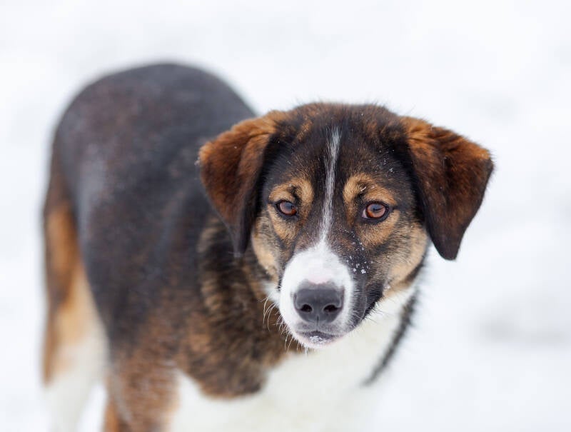 Ihre Geschichte: Bulochka ist einer von vielen Welpen, die im eisigen Winter auf der Straße von Ramenskoje geboren wurde. So kam sie mit anderen in eine pflegestelle wo sie jetzt schon länger wartet.