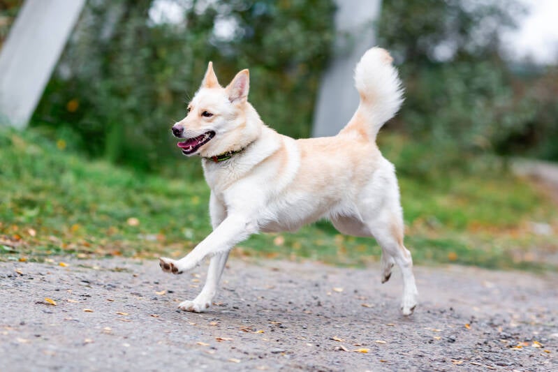 Mit anderen Hunden kommt er gut klar und lebt auch mit anderen Hunden zusammen. Er liebt aktive Spiele mit anderen.