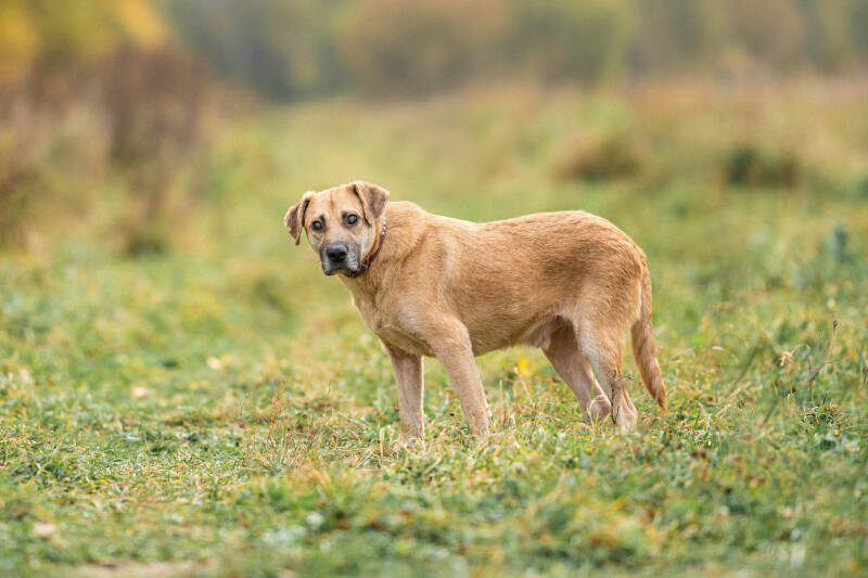 Mit anderen Hunden kommt er gut klar und zeigt keine Aggressionen.