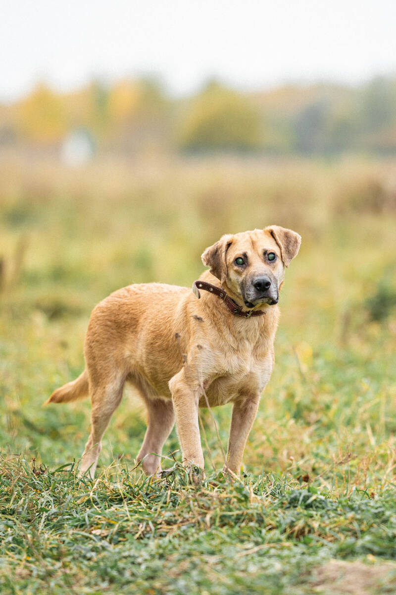 Archie ist ein aktiver , fröhlicher und freundlicher Kerl. Er kennt schon einige Grundkommandos und lernt sehr gerne neue Sache. Er liebt aktive Spaziergänge und gerade ein Ball wird ihm viel spaß beim Spaziergang machen. Er ist allerdings Geräuschempfindlich und kann bei lauten Geräuschen weglaufen oder zieht an der leine. Archie ist ein gutmütiger aber manchmal auch ängstlicher Hund. Er brauch immer wieder Erfolgs Erlebnisse um selbstbewusst und ruhiger zu werden. Er liebt Menschen und ist sehr aufgeschlossen und freundlich. Er liebt es zu Kuscheln. Auch mit Kindern kommt er klar und spielt gerne mit ihnen, manche machen ihm allerdings angst. Es sollten eher ältere und ruhige Kinder sein. An der leine kann er ziehen wenn er überdreht oder gestresst ist. Sonst aber läuft er gut und spielt gerne mit seinem Ball. Auch den Maulkorb kennt er schon und lässt sich super Bürsten, Krallen schneiden oder Baden.