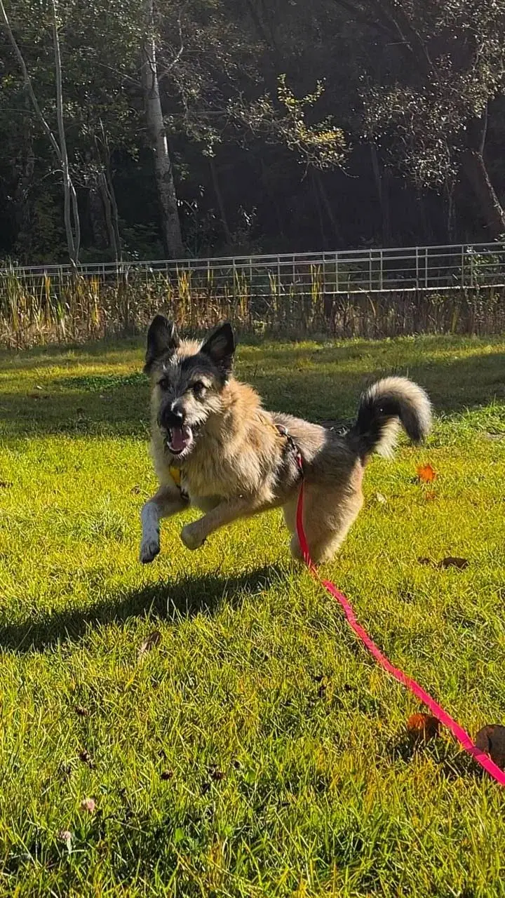 Seine Geschichte: Anfang 2025 kam er in ein Tierheim und er kam schnell zu uns. Leider ist uns nicht viel bekannt wo er her kommt aber wir denken er war schonmal ein Haushund den er war sofort sehr sozial und freundlich.
