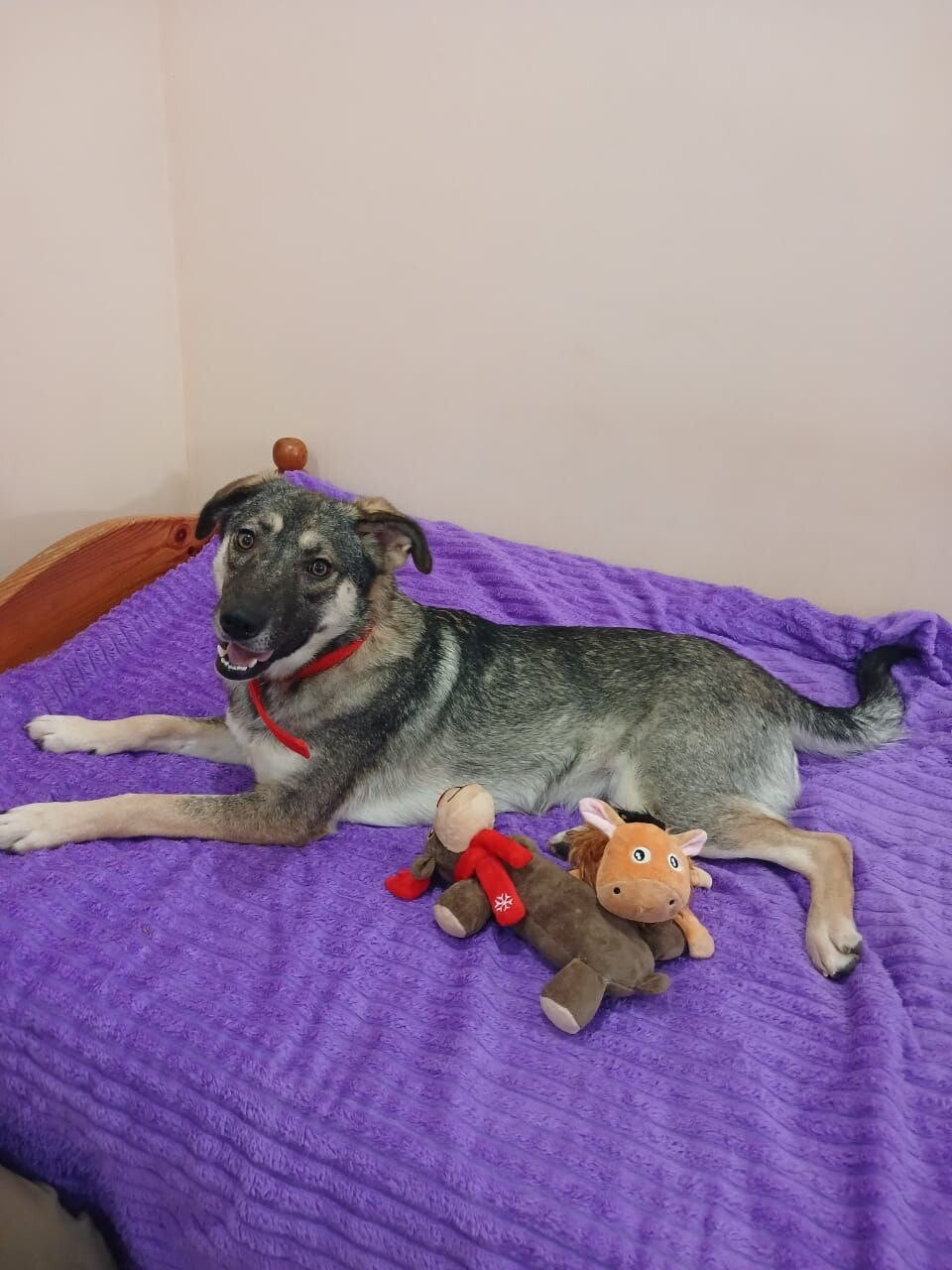 Ihre Geschichte: Sie wurde in Tschetschenien von der Straße gerettet. Als Welpe wurde sie mit ihren Geschwistern verwaist, ihre Mutter wurde von einem Auto überfahren. Alle Welpen starben an verschiedenen Sachen nur Julia überlebte. So nahmen wir sie bei uns auf.