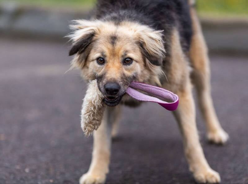 Seine Geschichte: Jack rannte lange in einem Dorf rum um Futter zu finden , aber viele hatten angst vor ihm und jagten ihn weg. Er versteckte sich und kam nur nachts raus . Trotzdem wollten die Leute ihn erschießen . Wir handelten sofort und holten ihn zu uns .